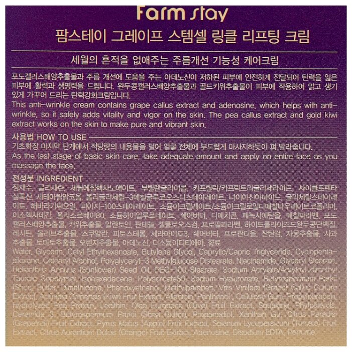 9. Farmstay Grape Stem Cell Wrinkle Lifting Cream Лифтинг крем для лица против морщин