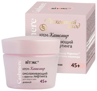 2. Крем-кашемир Витэкс Cashmere омолаживающий с эффектом лифтинга дневной для лица и шеи 45+ 45 мл