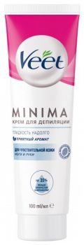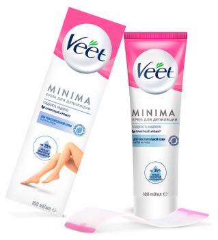 Обеспечить гладкость для кожи надолго обещает крем с алоэ вера Veet Minima. Средство содержит на 30% меньше химических составляющих, а потому для чувствительной и нежной кожи крем не представляет опасности. Крем рекомендуется использовать для удаления волос на ногах и руках, применять его для зоны бикини не рекомендуется, поскольку он может вызвать раздражение и ощущение небольшого жжения.
