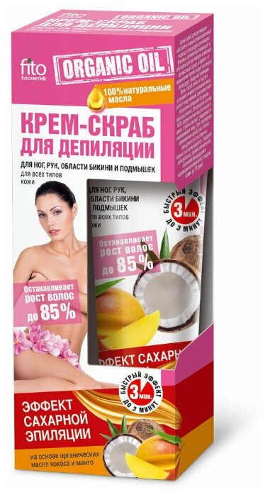 5. Fito косметик Крем-скраб для депиляции Organic Oil Эффект сахарной эпиляции
