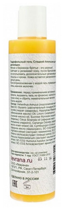 Гель-крем для депиляции и бритья нежелательной растительности на теле. В составе средства натуральные составляющие, которые помогают справиться с задачей без раздражений и шелушений. Приятный апельсиновый аромат делает процедуру депиляции максимально комфортной для пользователя.