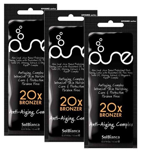 10. Sol Bianca Крем для солярия на основе алоэ “Pure”20х bronzer,45 мл (упаковка 3 шт*15 мл) (масла облепихи и семян конопли,экстракт женьшеня)