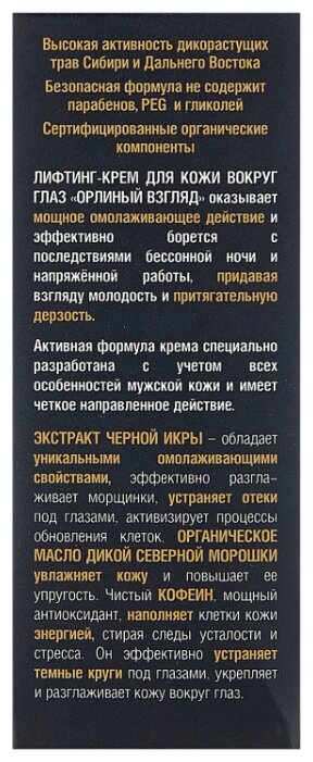 1. Natura Siberica Крем-лифтинг для кожи вокруг глаз Орлиный взгляд