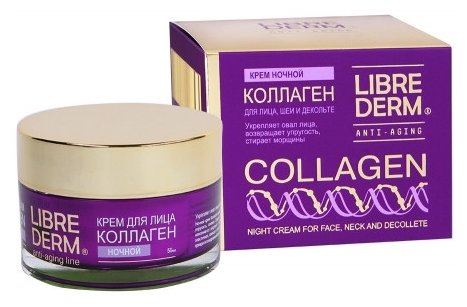 Устранение морщин происходит путем разглаживания кожи и улучшению ее тонуса, крем Librederm «Коллаген омолаживающий» возвращает молодость эпидермису, повышает его регенеративные свойства.