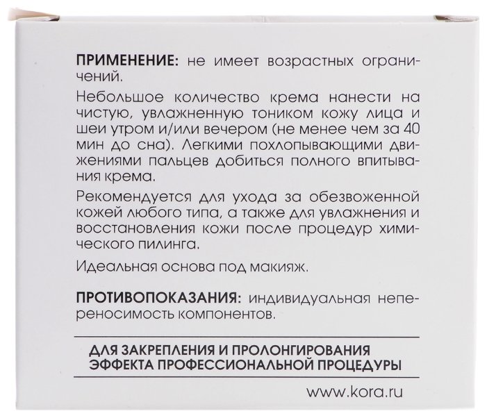 Быстрый и заметный антивозрастной результат обещает производитель дневного крема «Kora». В основе средства – микро молекулярные составляющие на основе гиалуроновой кислоты и коллагена. Крем способствует улучшенному кровоснабжению клеток кожи, нормализует их водный баланс и восстанавливает тонус. Лучший вариант для сухой кожи.