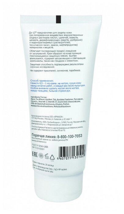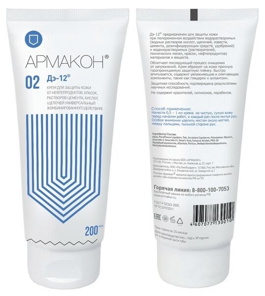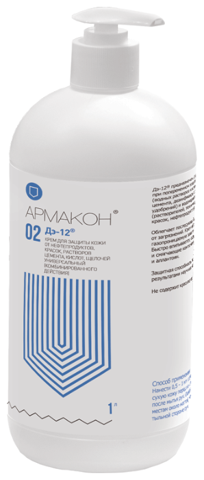 Универсальный крем для рук Армакон используется с целью защиты кожи от негативного воздействия лаков, красок, кислот и любых нефтепродуктов. Если кожа от природы излишне сухая, трескается и плохо отмывается от загрязнений – рекомендуется использовать данный защитный крем.