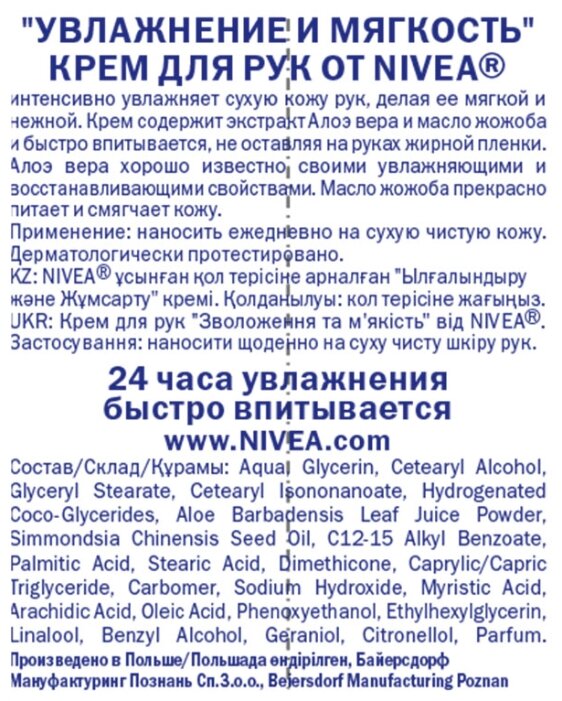 Крем Нивея – это мягкая защита, бережный уход и комплексный подход для увлажнения сухой и поврежденной кожи рук. Отзывы покупателей только положительные, учитывая выгодное сочетание цены и качества, Nivea – один из самых популярных кремов на рынке.