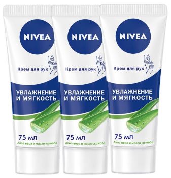 Бережный уход и щедрое увлажнение сухой кожи рук обещает крем Nivea с экстрактом алоэ вера и витамином Е. Универсальное средство применяется для всех типов кожи, помогает улучшить гидролипидный баланс обезвоженной дермы, способствует возобновлению регенерационных свойств клеток.