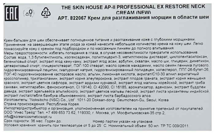 6. The Skin House Ap-II Professional Ex Restore Neck Cream Крем для разглаживания морщин в области шеи и декольте