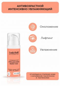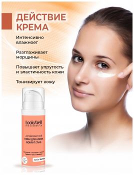 7. Крем для кожи вокруг глаз и век, от гусиных лапок LooksWell. Антивозрастной, увлажняющий крем с мочевиной. Лифтинг эффект.