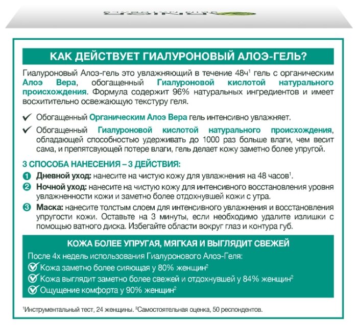 - Активный ингредиент: гиалуроновая кислота, глицерин