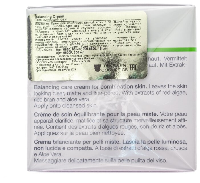 Балансирующий крем Janssen Balancing помогает коже справиться с проблемой избыточной сухости или жирного блеска, позволяет держать нужный баланс водно-липидного барьера. Рекомендуется использовать крем два раза в день: утром и на ночь.