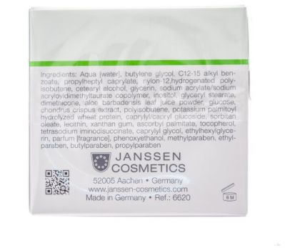 Крем Janssen Balancing косметологи рекомендуют в том случае, если необходимо обеспечить увлажнение и питание жирной проблемной кожи с расширенными порами и кожными высыпаниями. Состав крема позволяет контролировать работу сальных желез, устраняет жирный блеск и обеспечивает бархатистую поверхность.