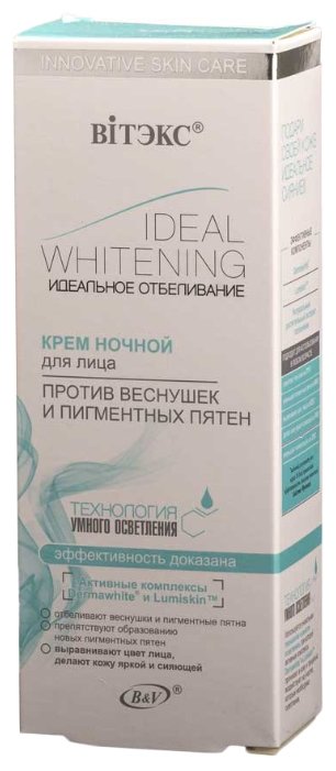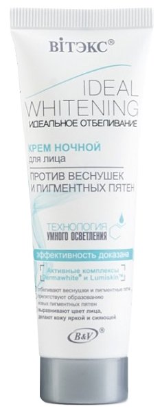 3. Витэкс Ideal Whitening Крем ночной отбеливающий для лица против веснушек и пигментных пятен с технологией «умного» осветления кожи