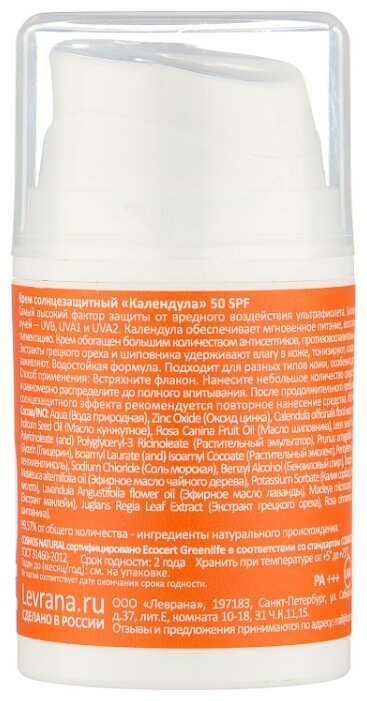 2. Levrana Солнцезащитный крем Календула SPF 50