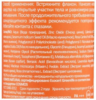 - Дополнительная информация: способ применения: нанесите небольшое количество средства на открытые участки тела и равномерно распределите до полного впитывания. После продолжительного пребывания в воде для поддержания солнцезащитного эффекта рекомендуется повторное нанесение средства. Избегайте контакта с глазами