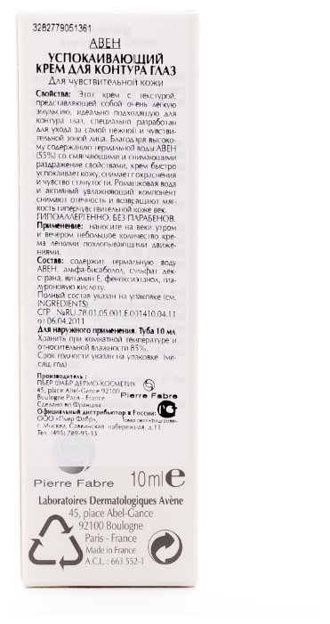 - Способ применения: наносите небольшое количество крема утром и вечером легкими похлопывающими движениями на раздраженную кожу вокруг глаз; используйте крем до полного исчезновения признаков раздражения